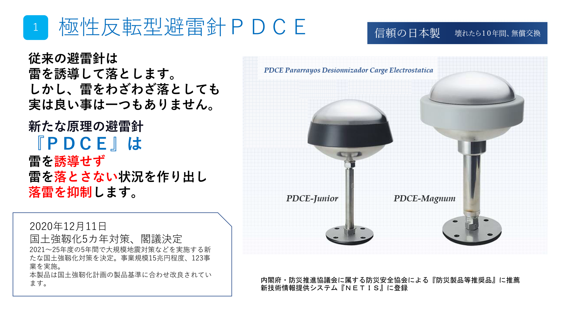【1. 極性反転型避雷針PDCE】