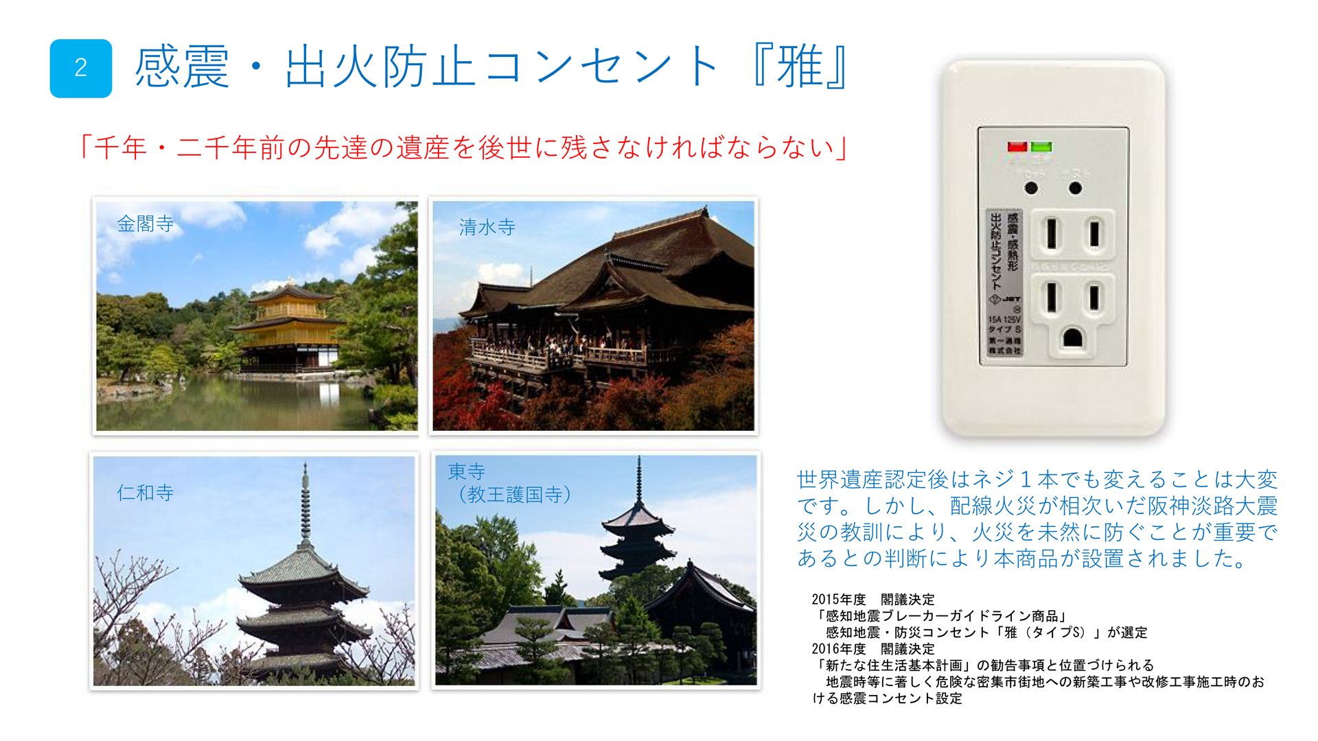 【2. 感震・出火防止コンセント『雅』】